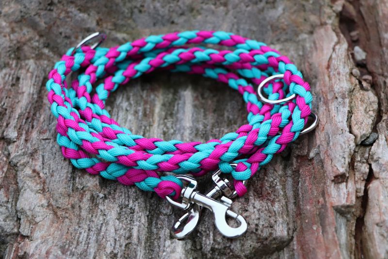 Růžovo-tyrkysové přepínací vodítko ze 4 pramenů - délka 2 m